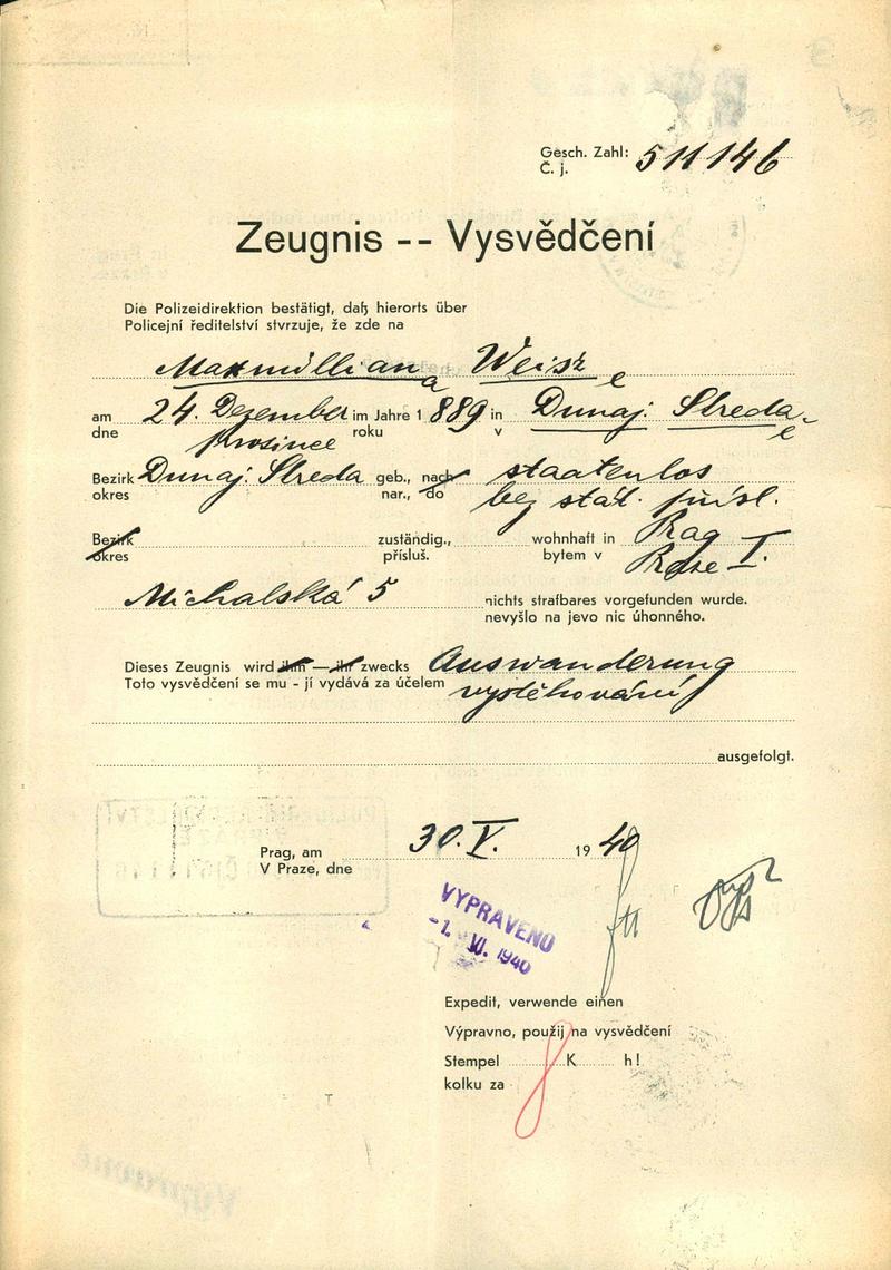 Národní archiv Praha > Policejní ředitelství v Praze > 1941-1950 > W > Weisz Max