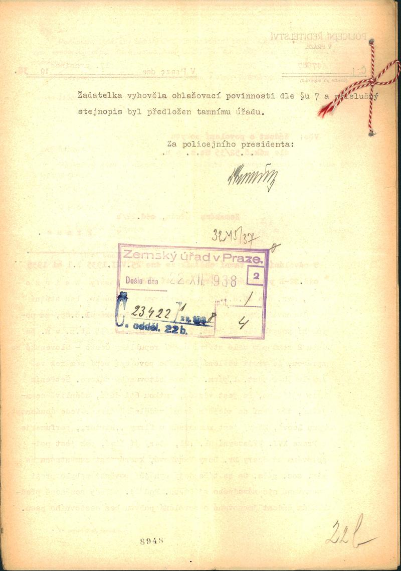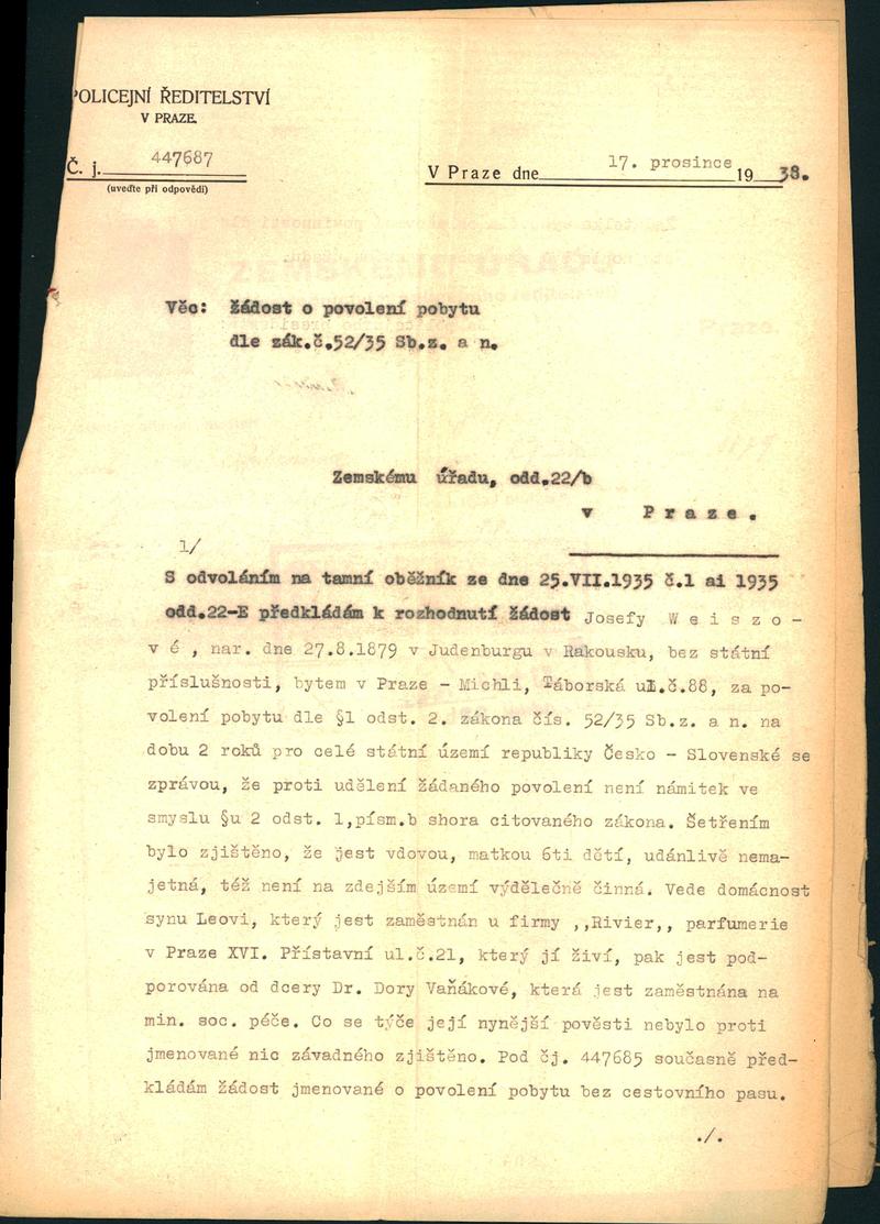 Národní archiv Praha > Policejní ředitelství v Praze > 1941-1950 > W > Weiszová Josefina