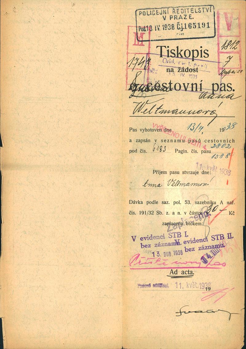 Národní archiv Praha > Policejní ředitelství v Praze > 1941-1950 > W > Weltmanová Anna