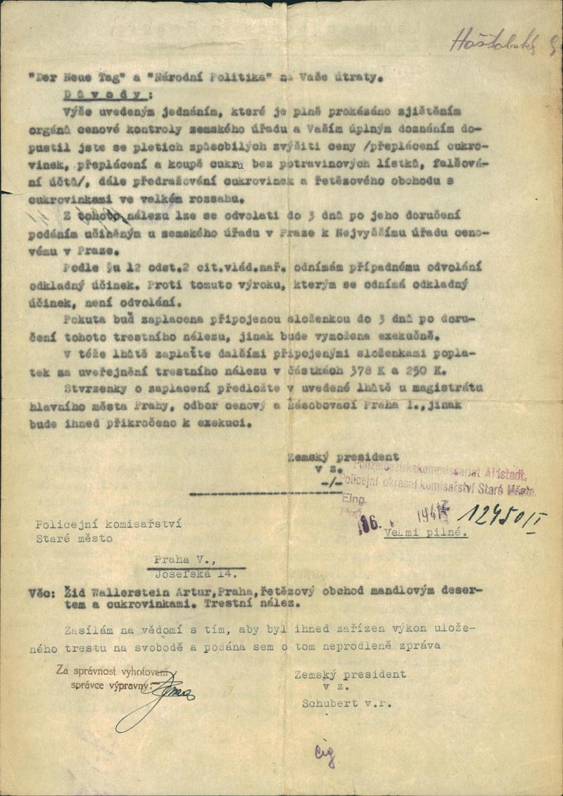 Národní archiv Praha > Policejní ředitelství v Praze > 1941-1950 > W > Wallerstein Artur