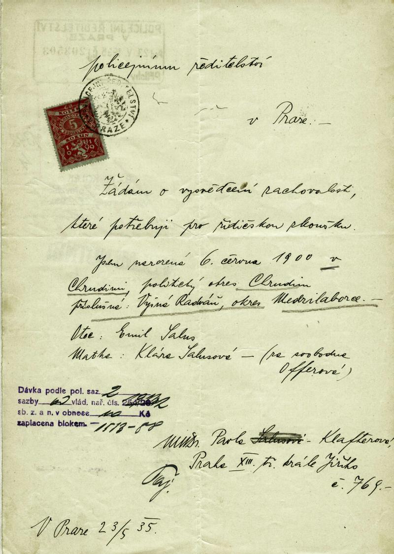 Národní archiv Praha > Policejní ředitelství v Praze > 1931-1940 > K > Klafterová-Salusová Pavla
