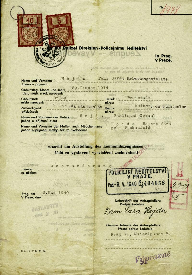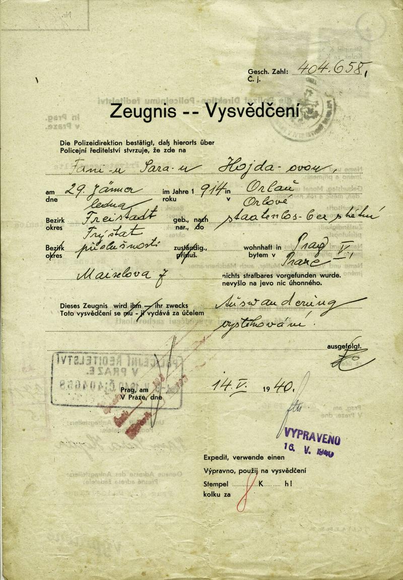 Národní archiv Praha > Policejní ředitelství v Praze > 1931-1940 > K > Klausnerová Františka