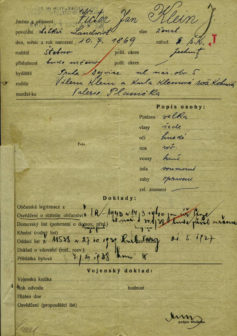 Národní archiv Praha > Policejní ředitelství v Praze > 1931-1940 > K > Klein Viktor