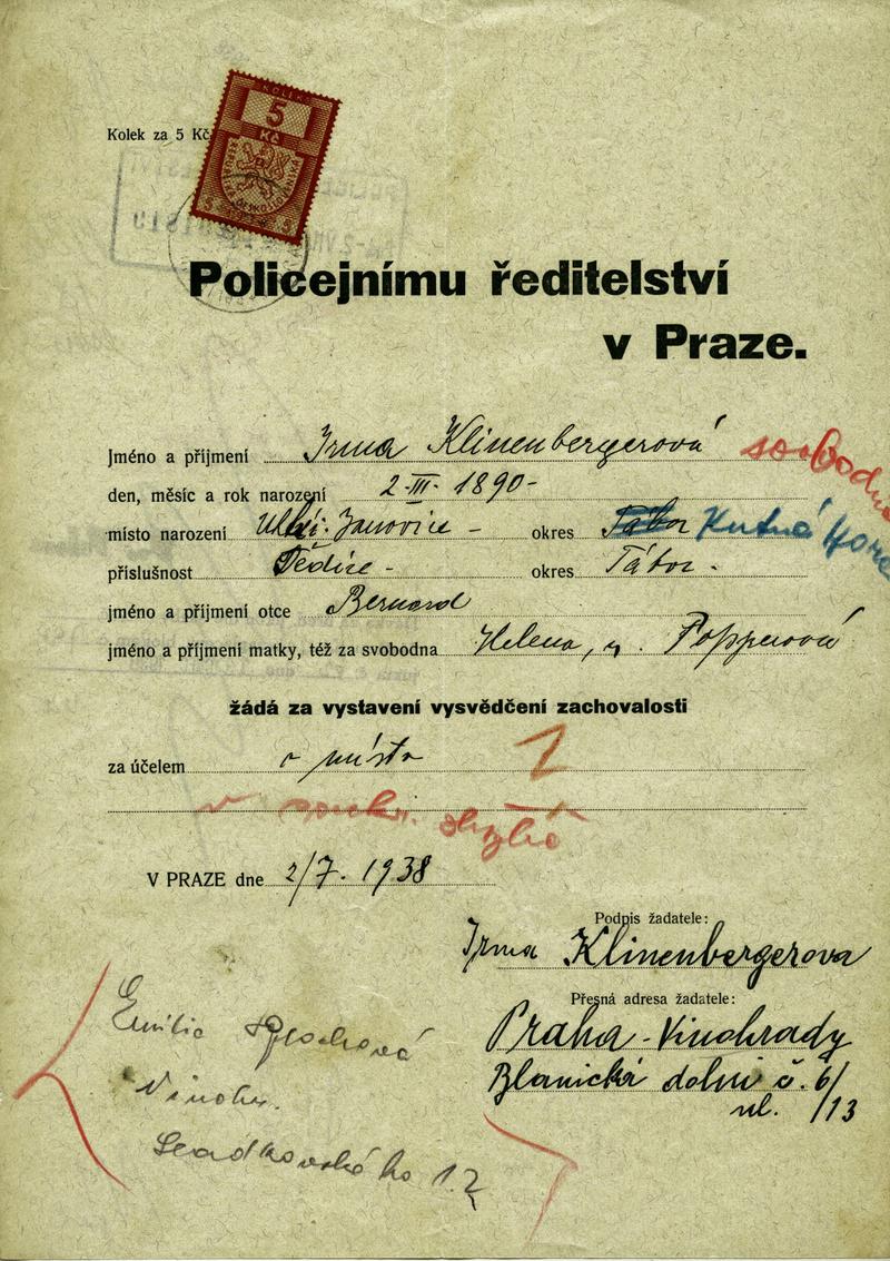 Národní archiv Praha > Policejní ředitelství v Praze > 1931-1940 > K > Klinenbergerová Irma