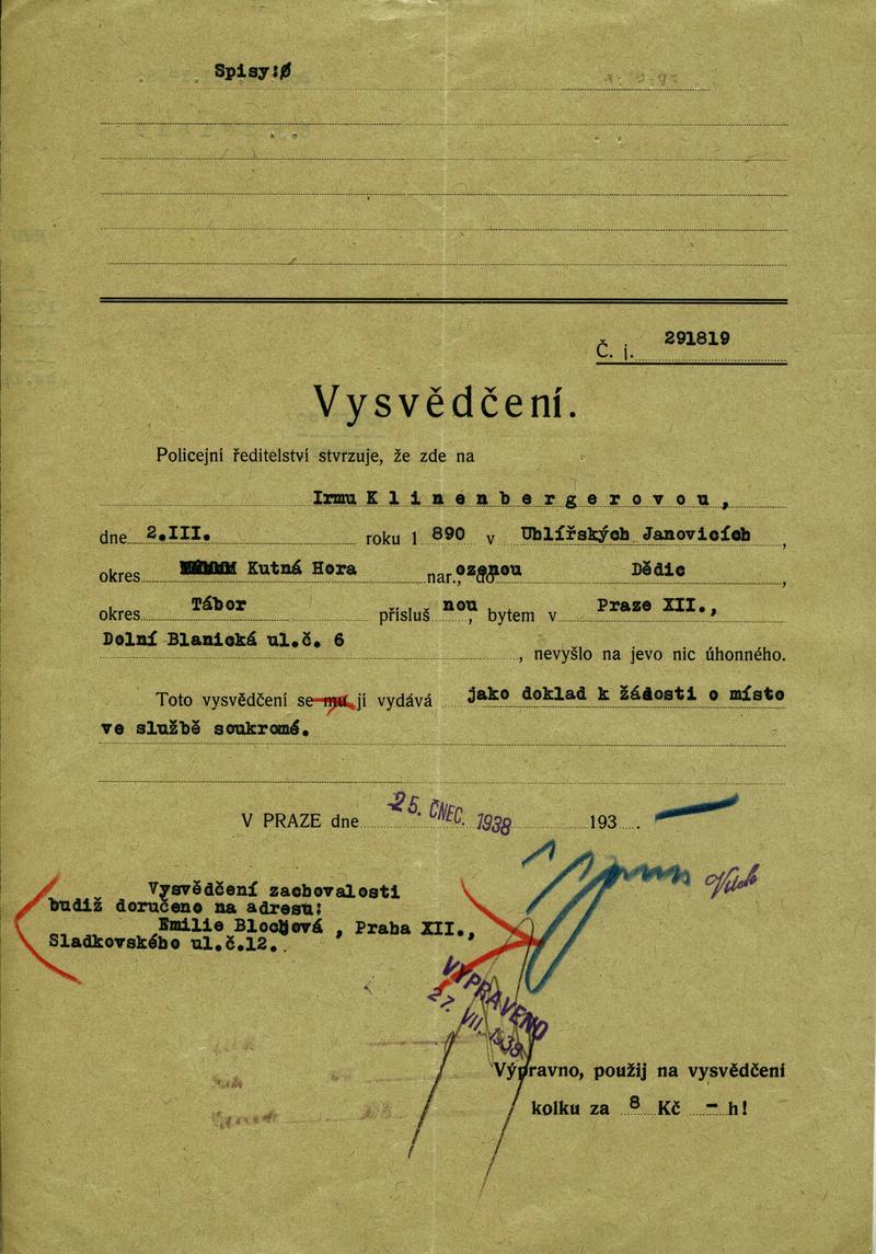Klinenbergerová Irma: NEZPRACOVÁNO