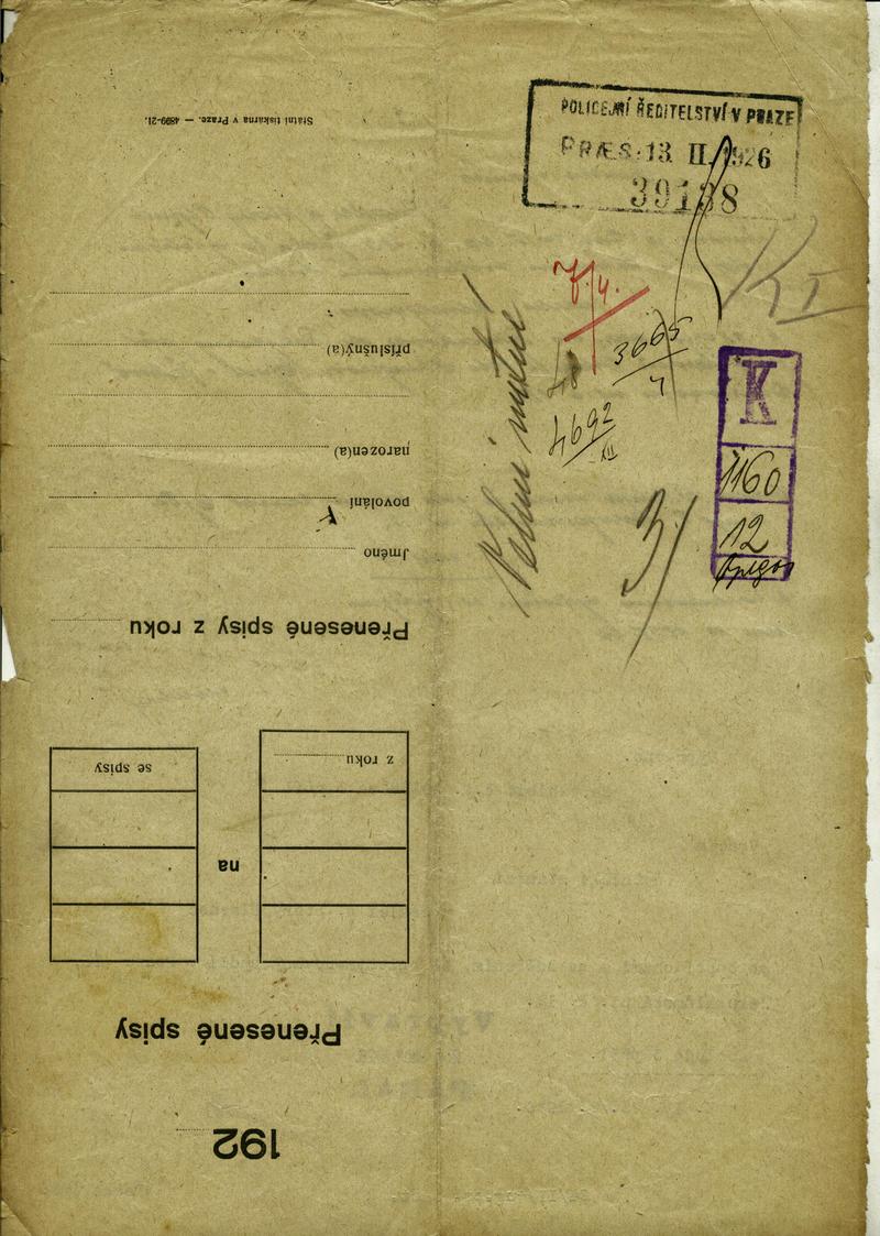 Národní archiv Praha > Policejní ředitelství v Praze > 1931-1940 > K > Klinger Karel