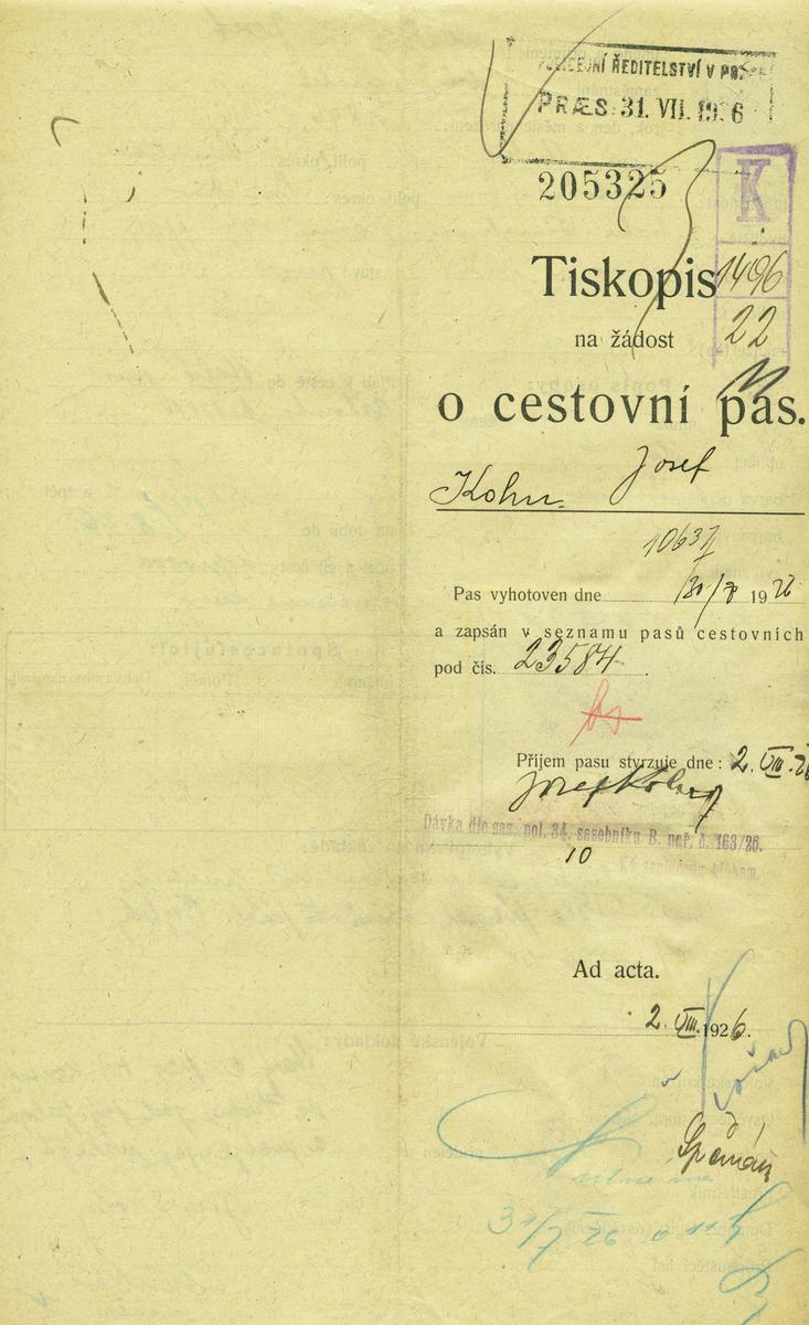 Národní archiv Praha > Policejní ředitelství v Praze > 1931-1940 > K > Kohn Josef