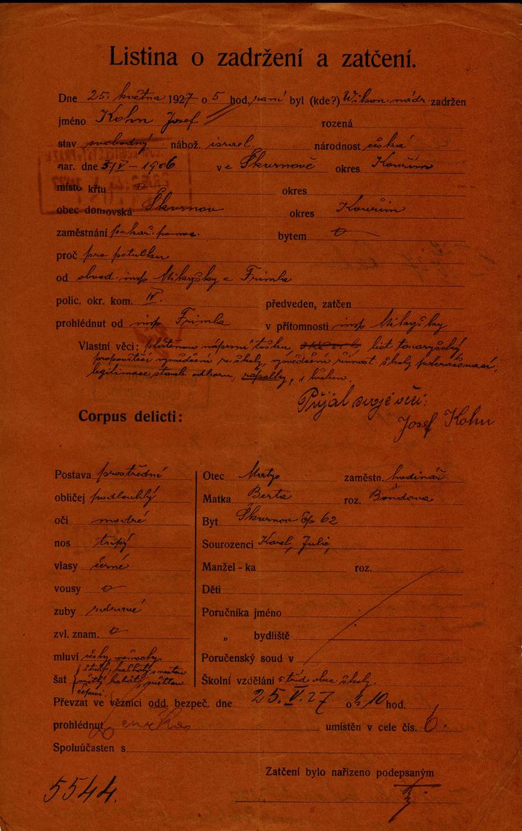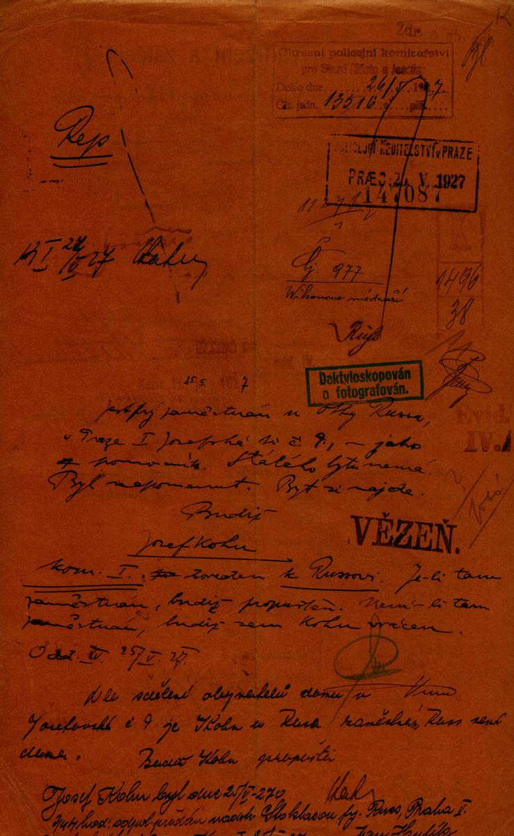 Národní archiv Praha > Policejní ředitelství v Praze > 1931-1940 > K > Kohn Josef