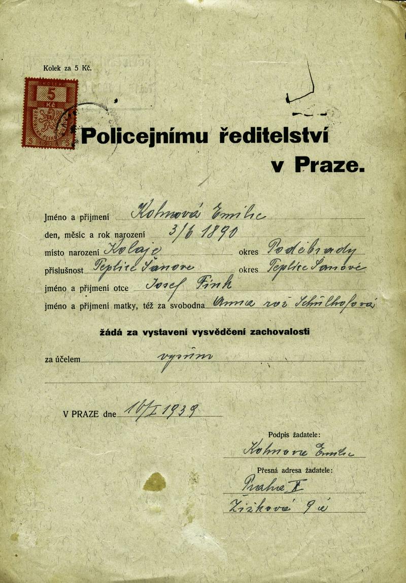 Národní archiv Praha > Policejní ředitelství v Praze > 1931-1940 > K > Kohnová Emilie