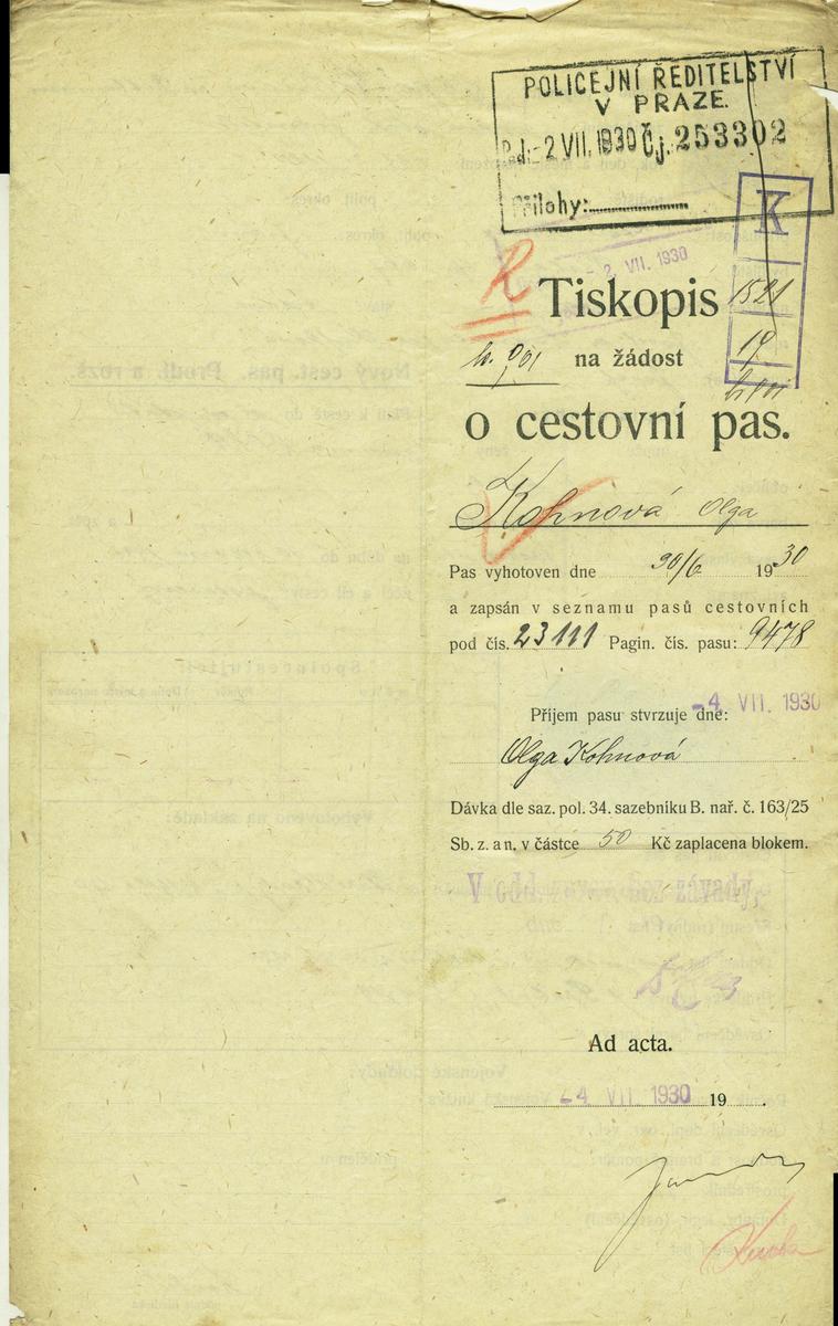 Národní archiv Praha > Policejní ředitelství v Praze > 1931-1940 > K > Kohnová Olga