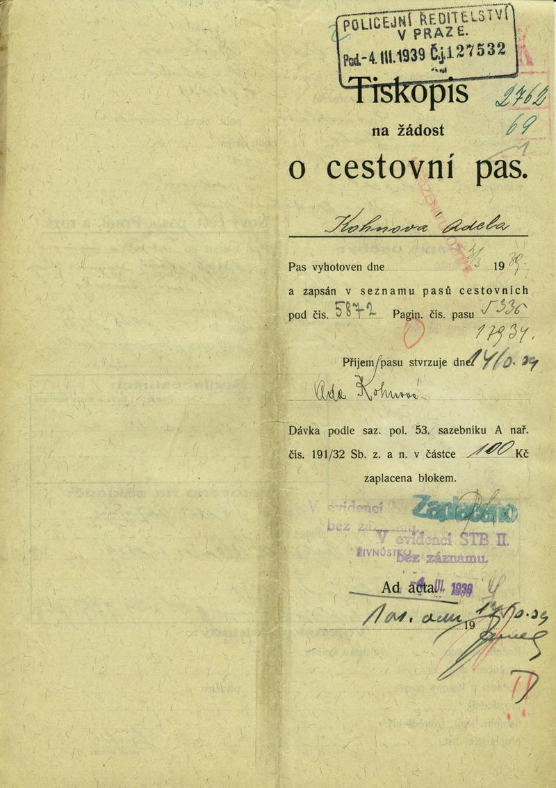 Národní archiv Praha > Policejní ředitelství v Praze > 1931-1940 > K > Kohnová Adéla