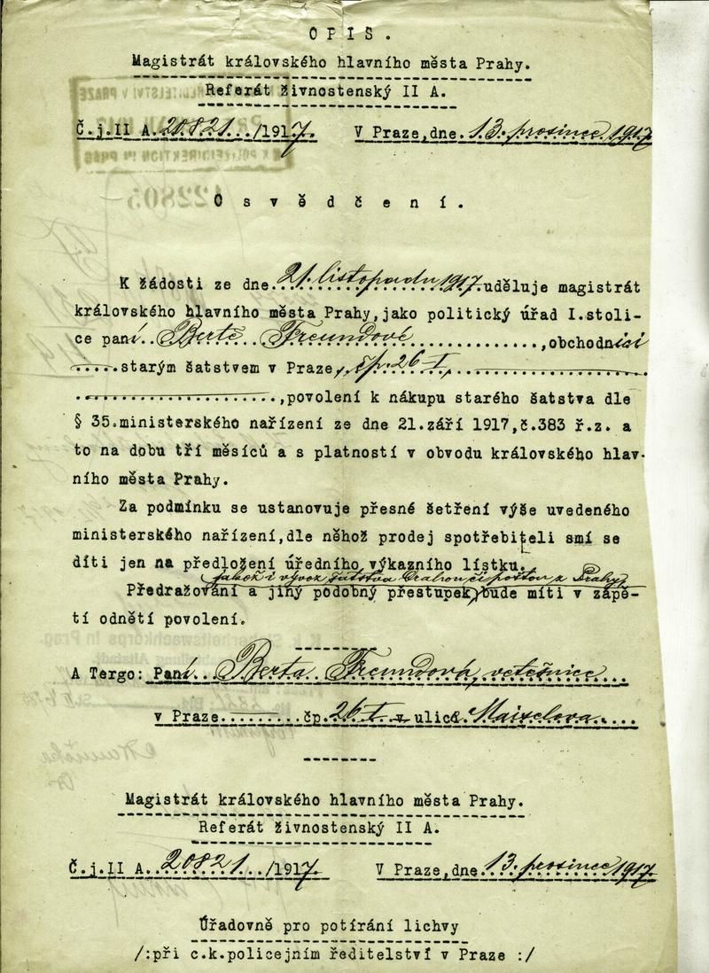 Pro publikaci je nutné kontaktovat Národní archiv v Praze, kde je uložen originál dokumentu. Dokument byl digitalizován Institutem Terezínské iniciativy v rámci projektu Terezínské album.