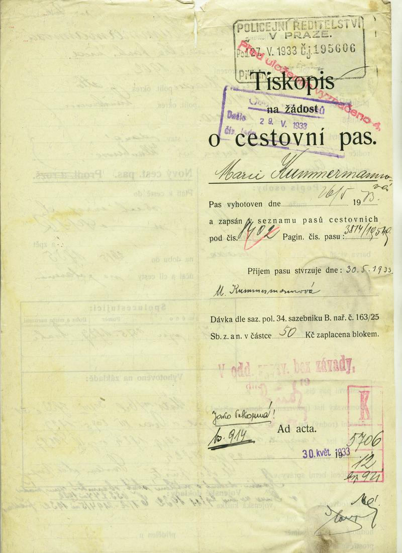 Národní archiv Praha > Policejní ředitelství v Praze > 1931-1940 > K > Kummermannová Marie