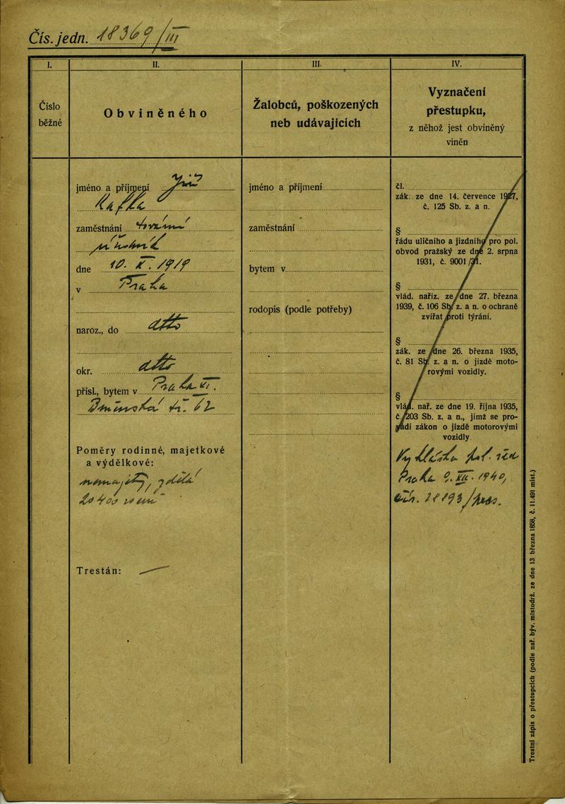 Národní archiv Praha > Policejní ředitelství v Praze > 1941-1950 > K > Kafka Jiří