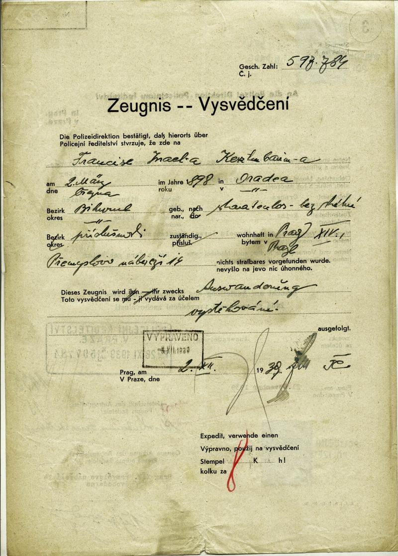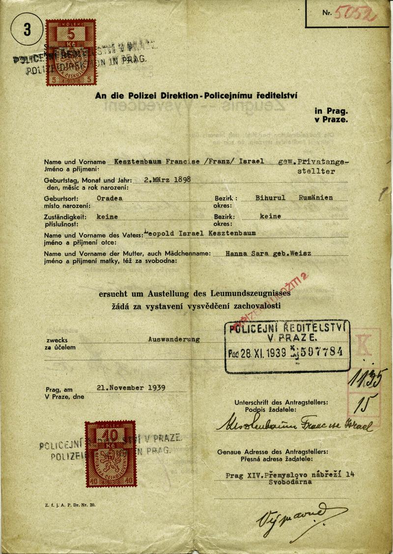 Národní archiv Praha > Policejní ředitelství v Praze > 1941-1950 > K > Kestenbaum František