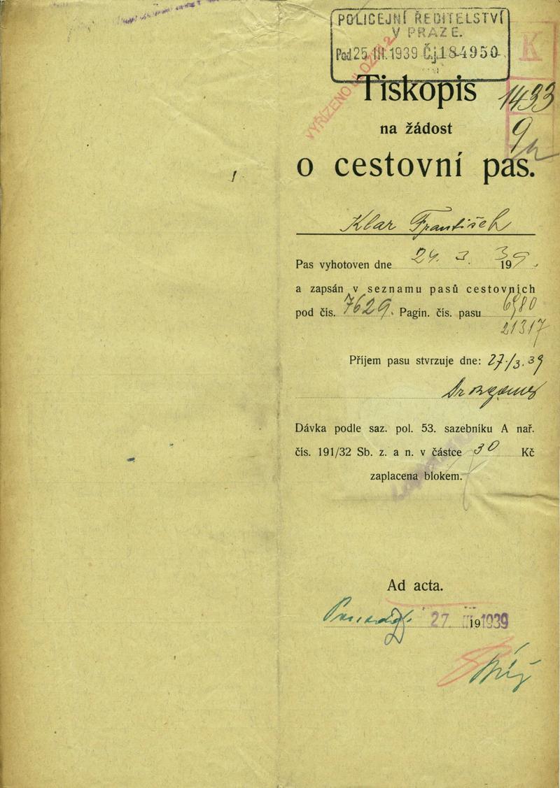 Národní archiv Praha > Policejní ředitelství v Praze > 1941-1950 > K > Klar František