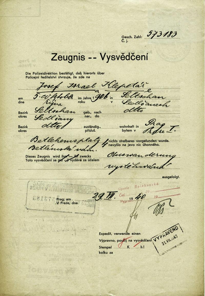 Národní archiv Praha > Policejní ředitelství v Praze > 1941-1950 > K > Klepetář Josef