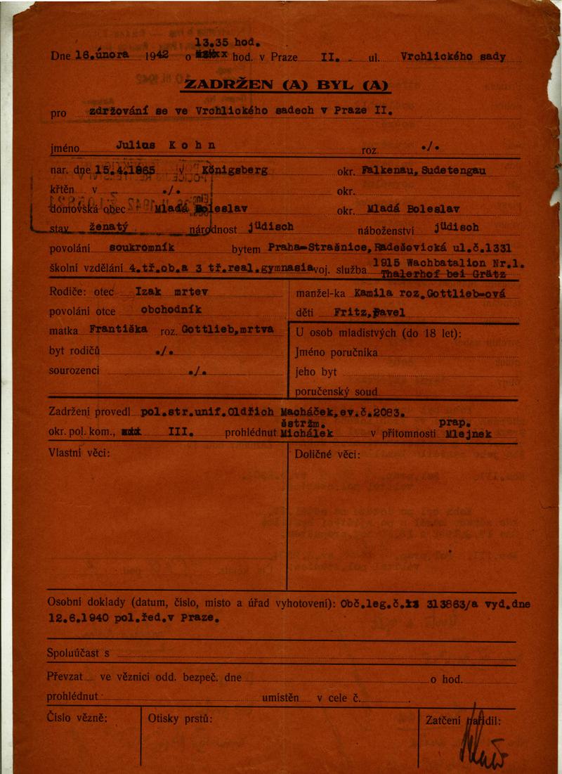 Národní archiv Praha > Policejní ředitelství v Praze > 1941-1950 > K > Kohn Julius