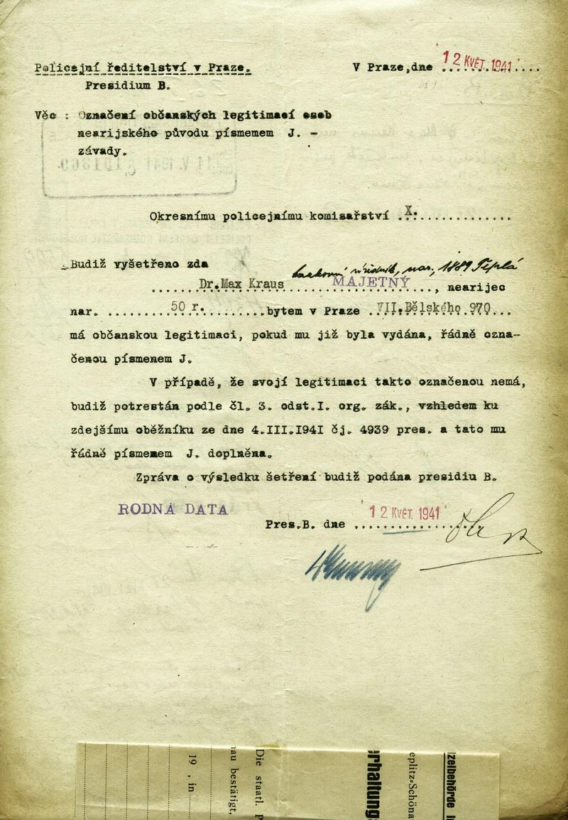 Národní archiv Praha > Policejní ředitelství v Praze > 1941-1950 > K > Kraus Max