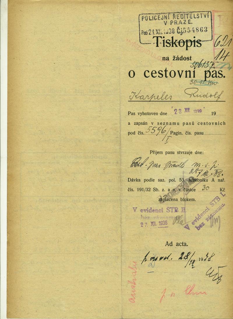 Národní archiv Praha > Policejní ředitelství v Praze > 1941-1950 > K > Karpeles Rudolf
