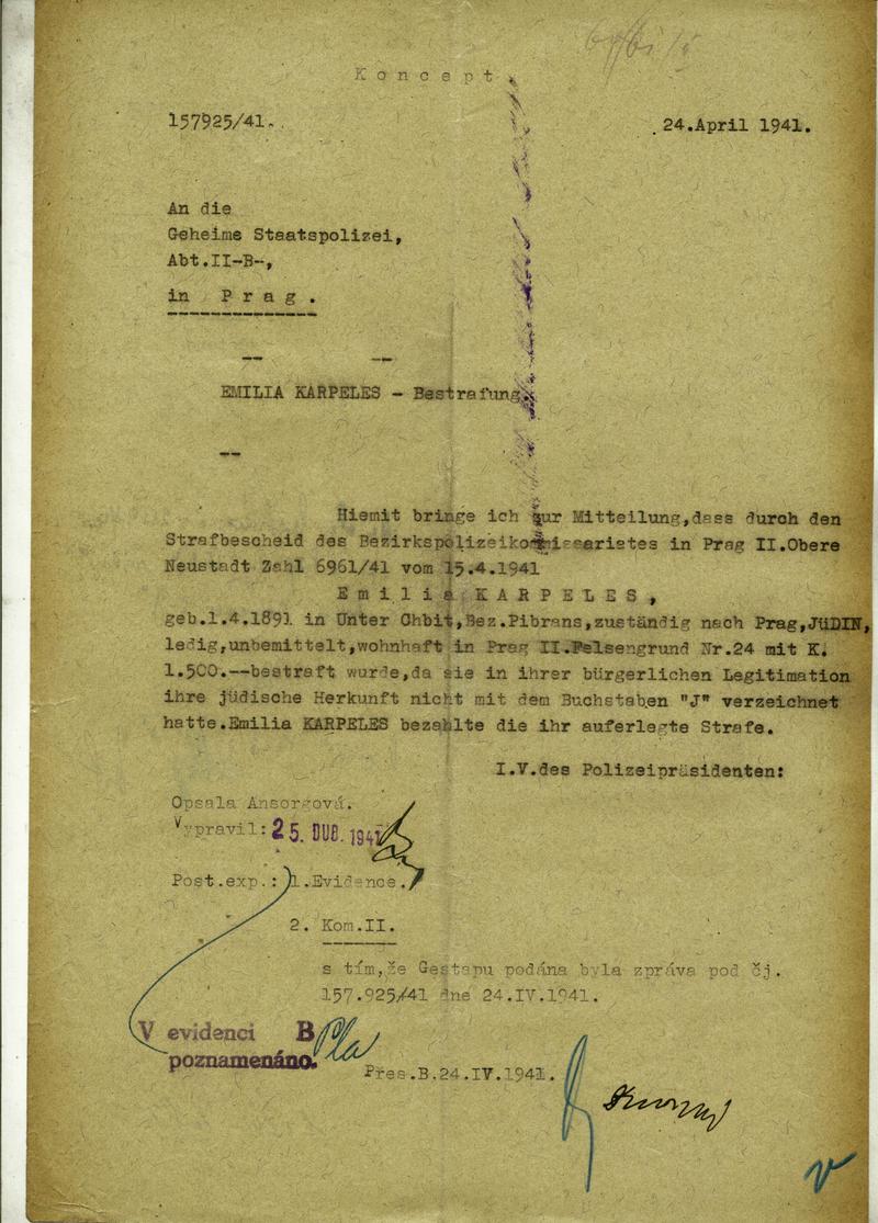 Národní archiv Praha > Policejní ředitelství v Praze > 1941-1950 > K > Karpelesová Emilie