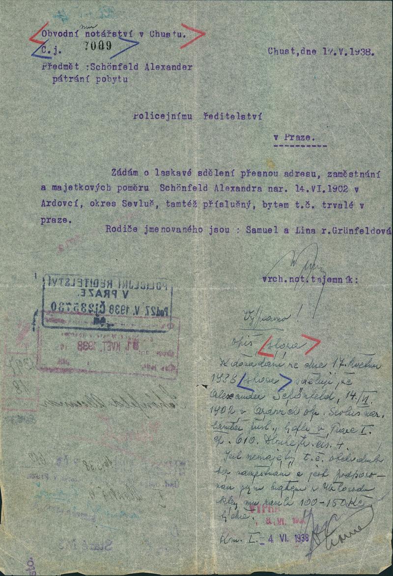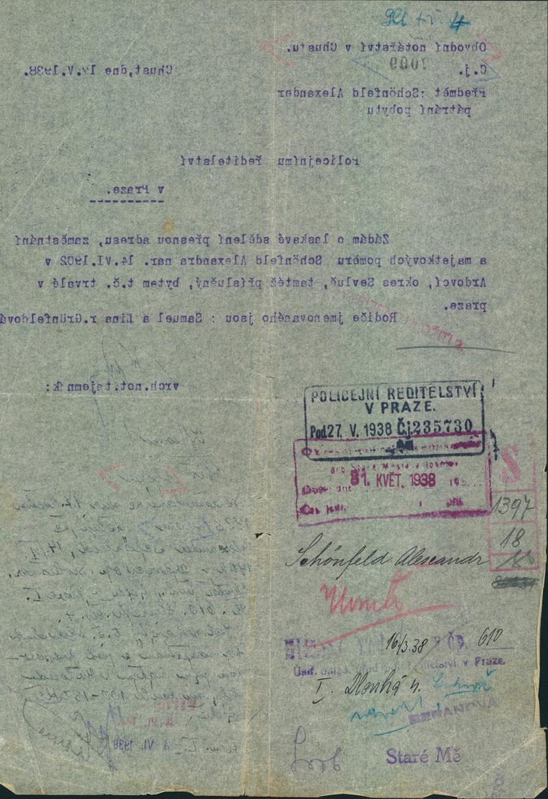 Národní archiv Praha > Policejní ředitelství v Praze > 1931-1940 > S > Schönfeld Alexander