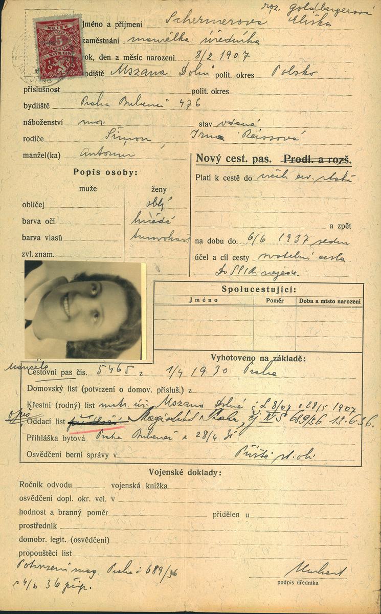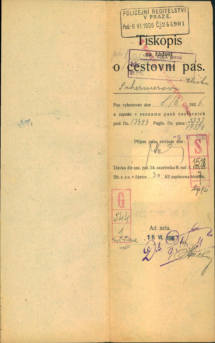 Národní archiv Praha > Policejní ředitelství v Praze > 1931-1940 > S > Schermerová Alžběta