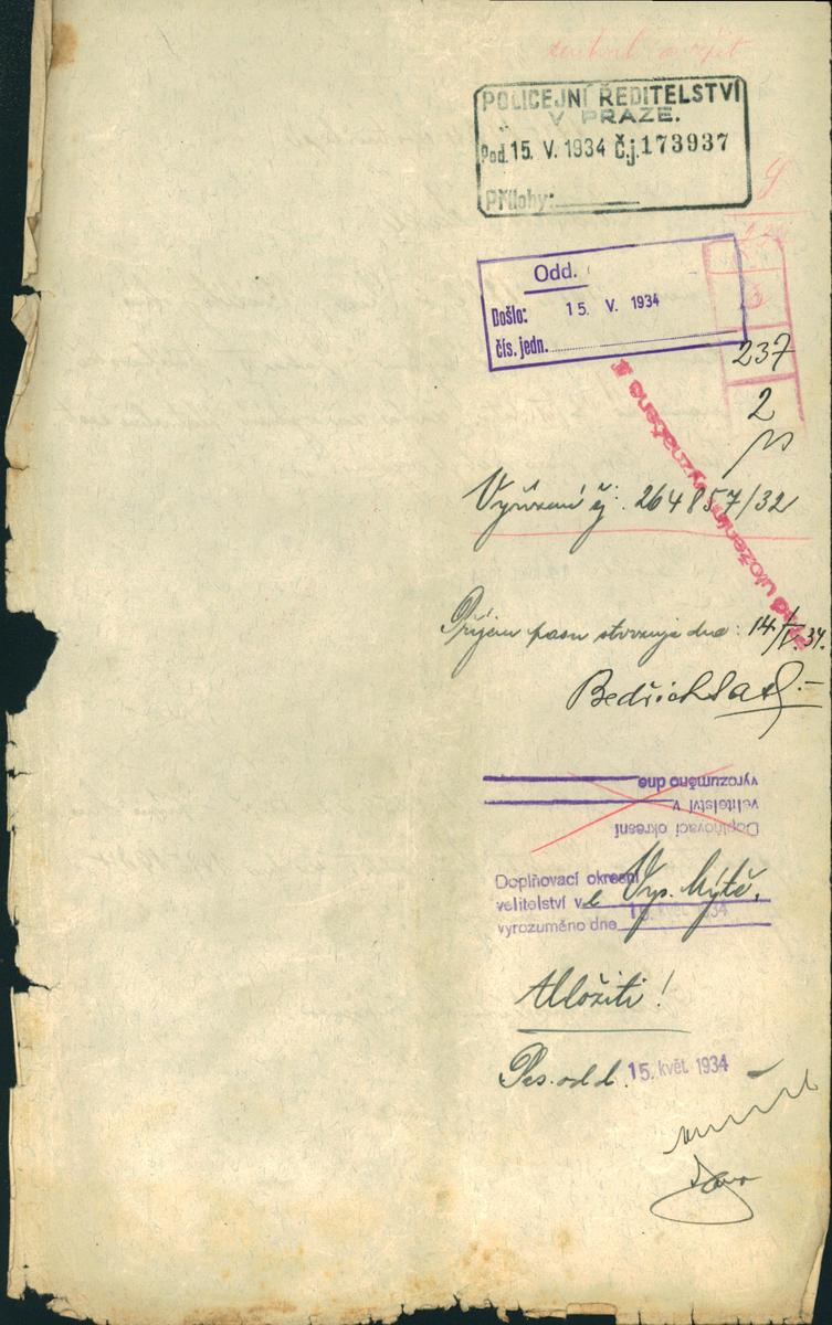 Národní archiv Praha > Policejní ředitelství v Praze > 1931-1940 > S > Saxl Bedřich