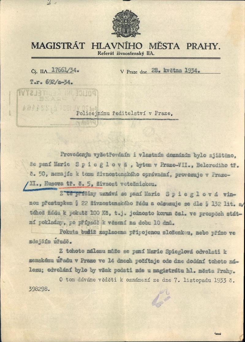 Národní archiv Praha > Policejní ředitelství v Praze > 1931-1940 > S > Spieglová Marie