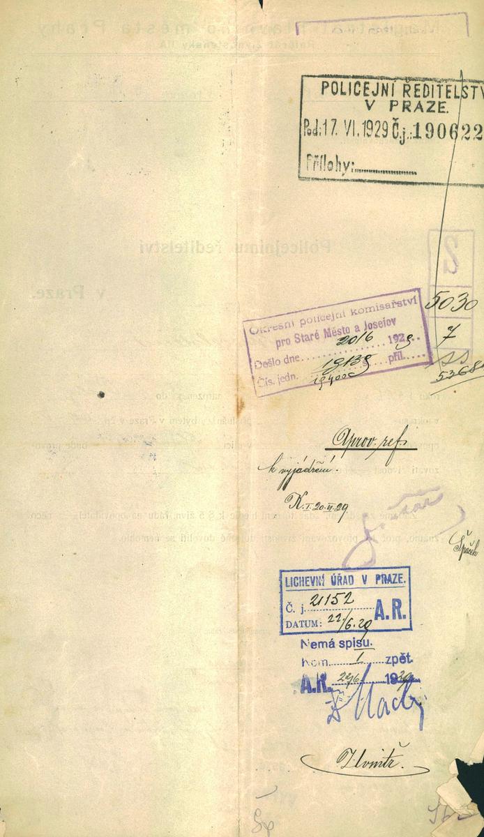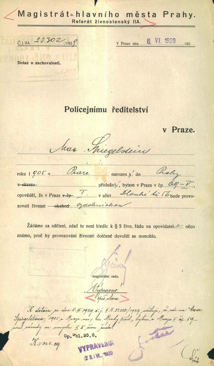 Národní archiv Praha > Policejní ředitelství v Praze > 1931-1940 > S > Spiegelstein Max