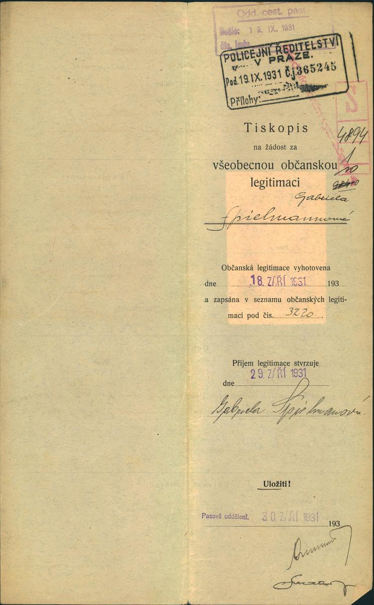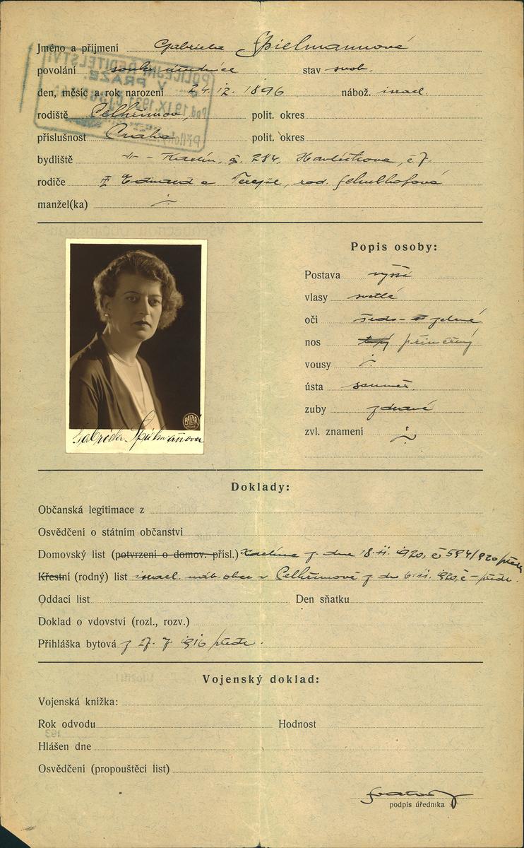 Národní archiv Praha > Policejní ředitelství v Praze > 1931-1940 > S > Spielmannová Gabriela