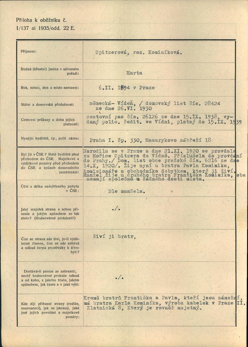 Národní archiv Praha > Policejní ředitelství v Praze > 1931-1940 > S > Spitzer Mořic