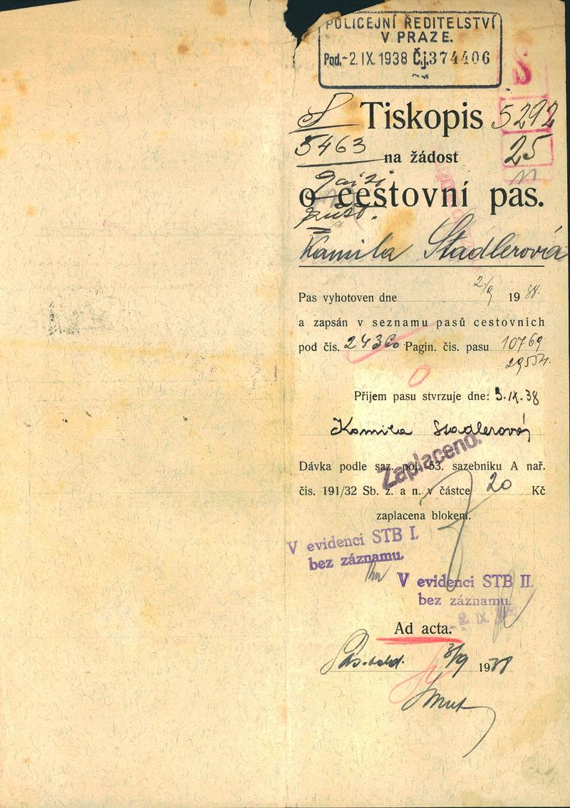 Národní archiv Praha > Policejní ředitelství v Praze > 1931-1940 > S > Stadlerová Kamila