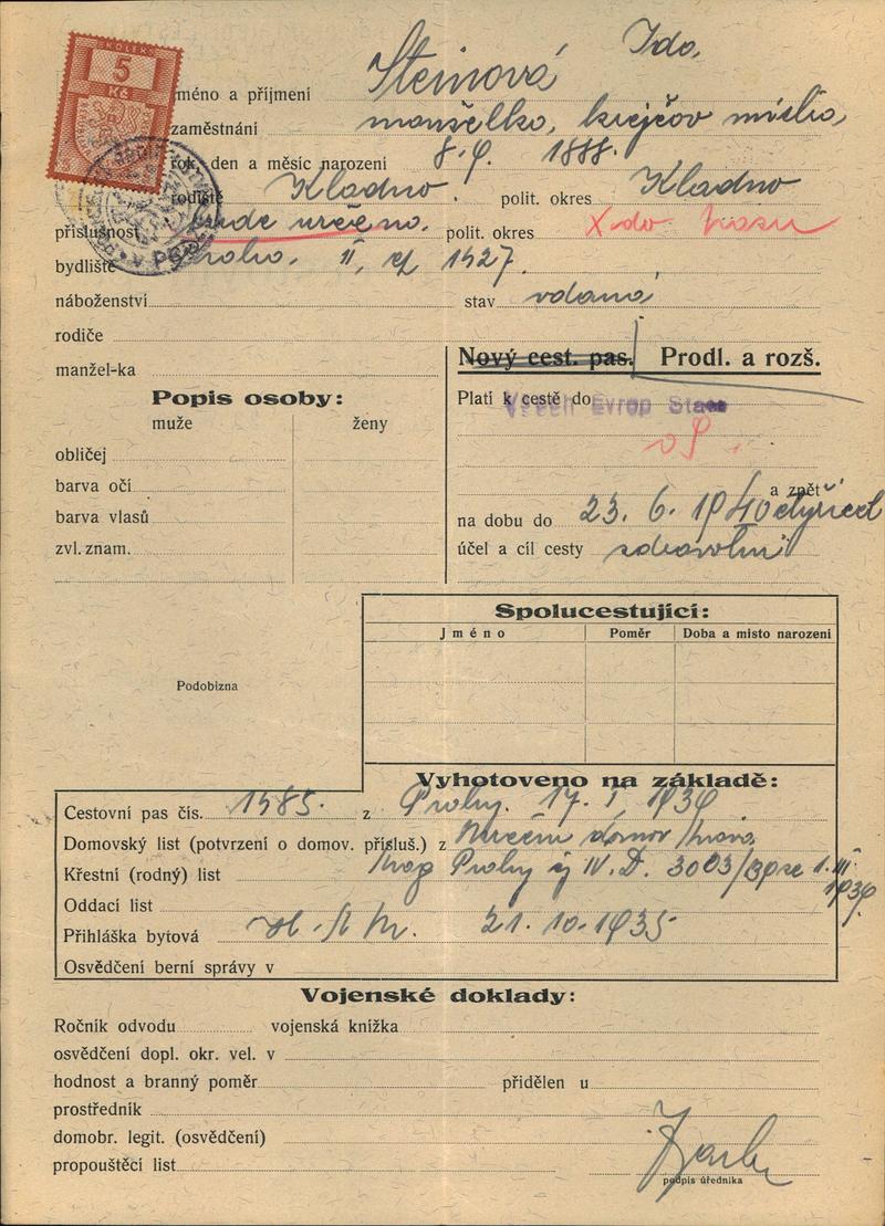 Národní archiv Praha > Policejní ředitelství v Praze > 1931-1940 > S > Steinová Ida