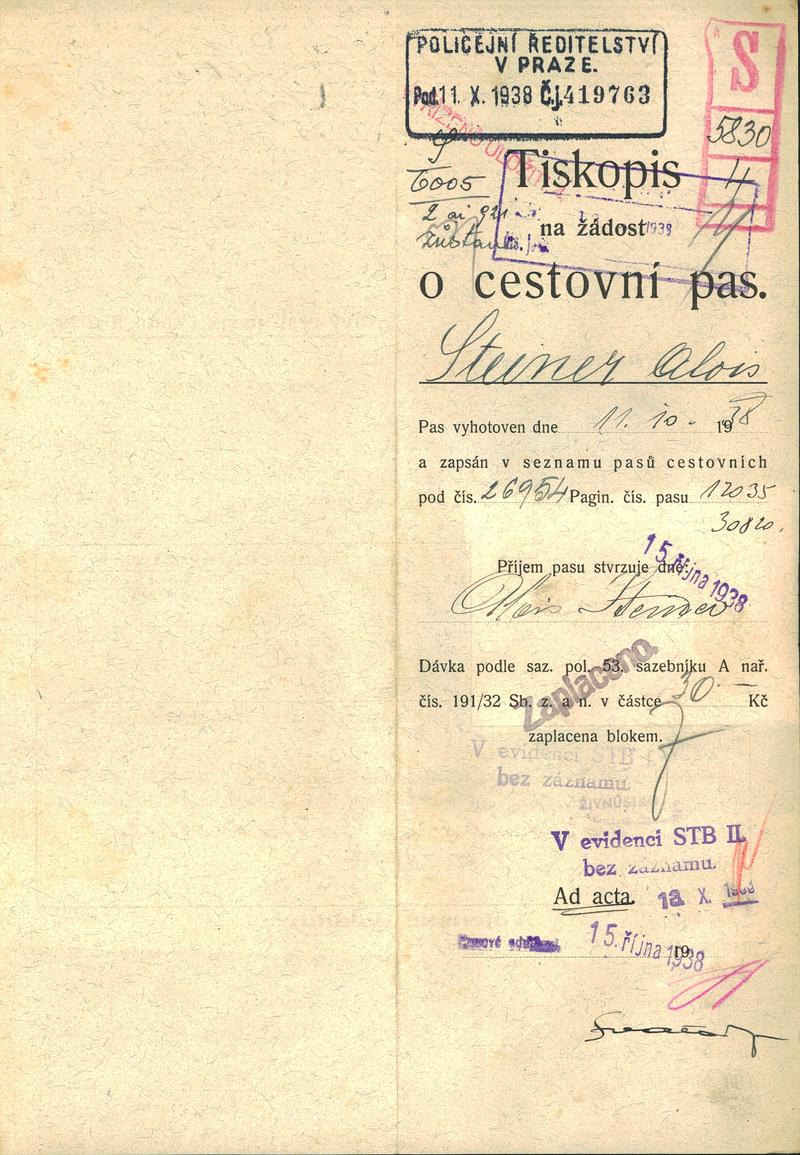 Národní archiv Praha > Policejní ředitelství v Praze > 1931-1940 > S > Steiner Alois