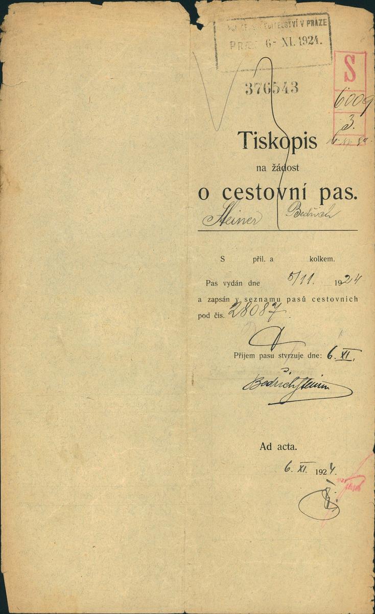 Národní archiv Praha > Policejní ředitelství v Praze > 1931-1940 > S > Steiner Bedřich