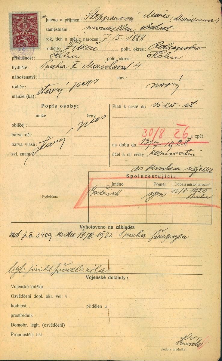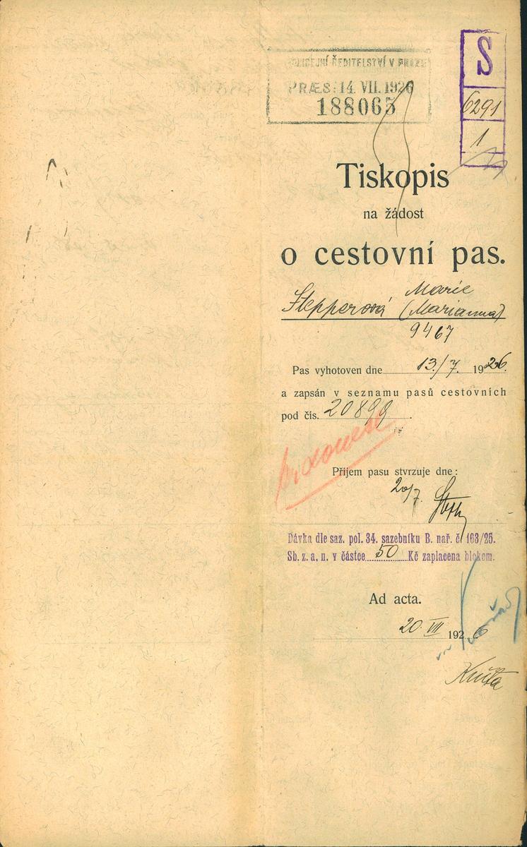 Národní archiv Praha > Policejní ředitelství v Praze > 1931-1940 > S > Stepperová Mariana