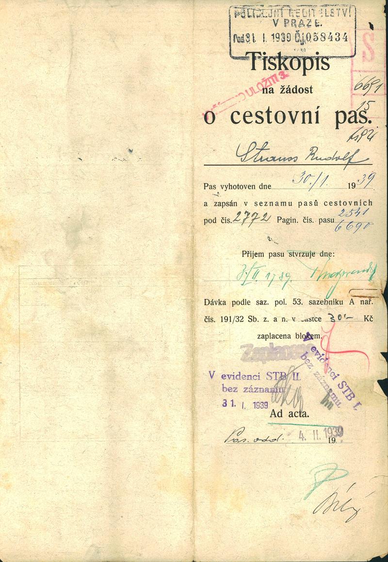 Národní archiv Praha > Policejní ředitelství v Praze > 1931-1940 > S > Strauss Rudolf