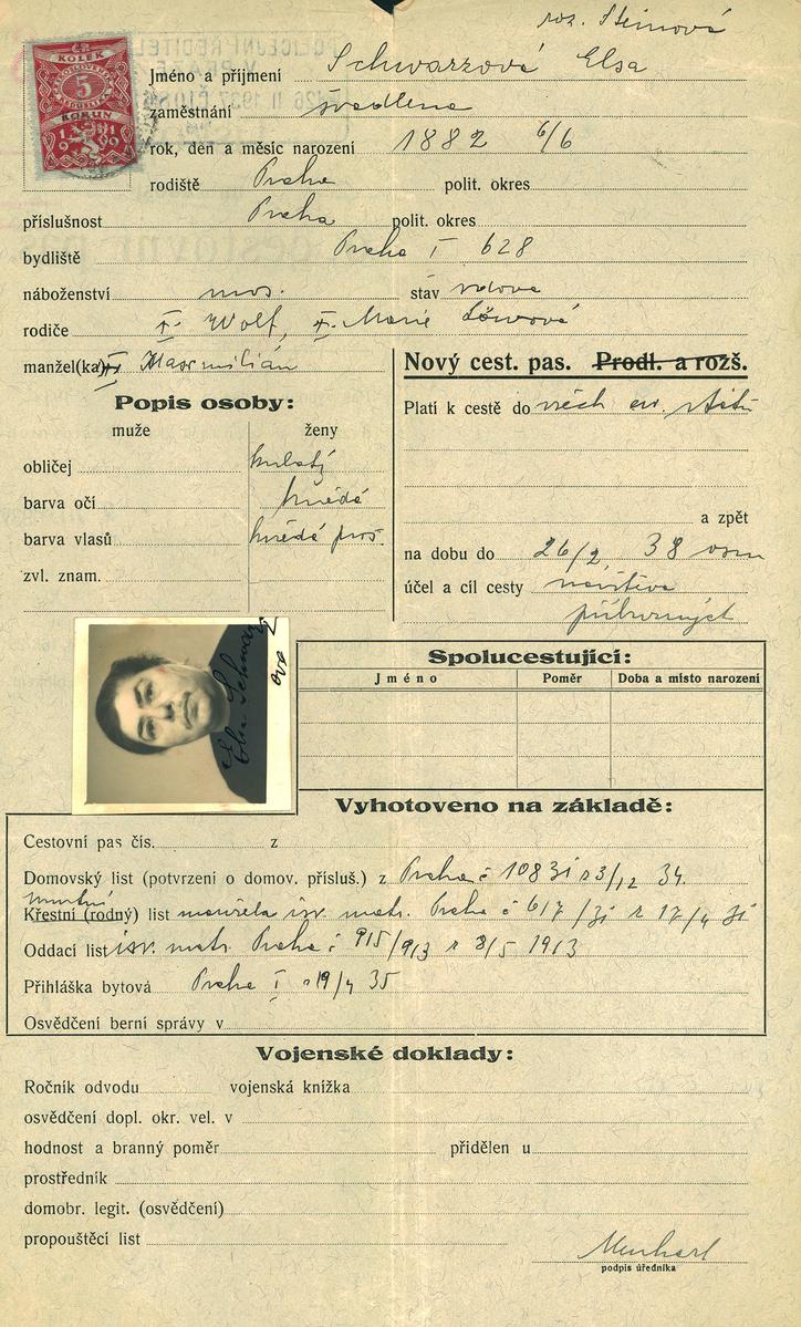Národní archiv Praha > Policejní ředitelství v Praze > 1931-1940 > S > Schwarzová Eliška