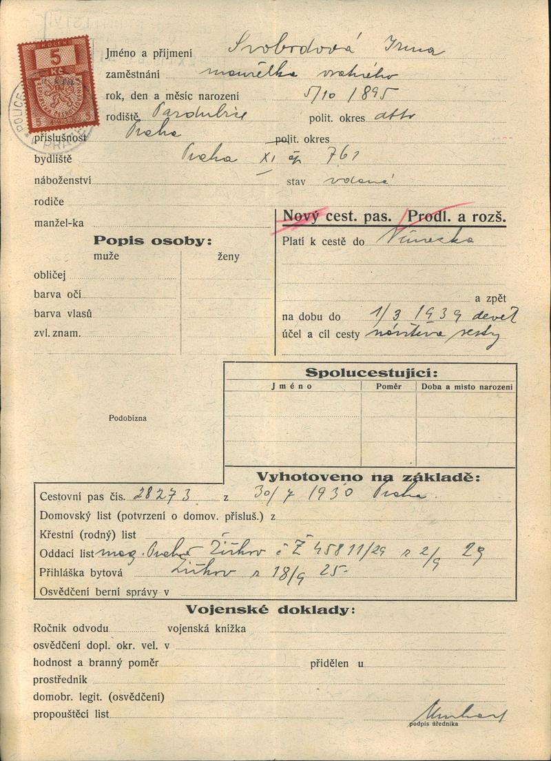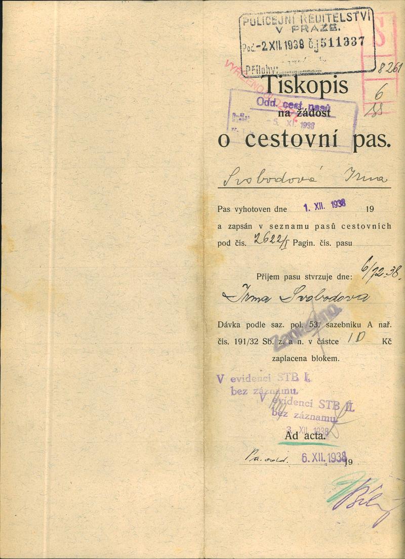 Národní archiv Praha > Policejní ředitelství v Praze > 1931-1940 > S > Svobodová Irma