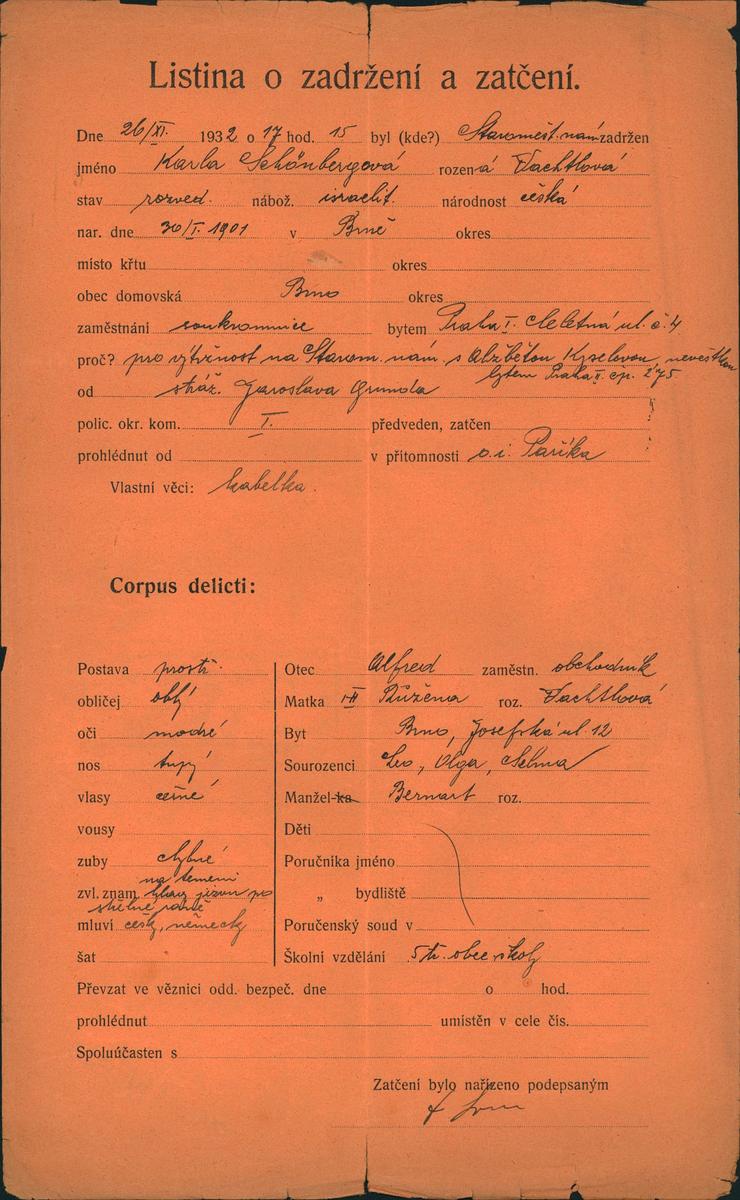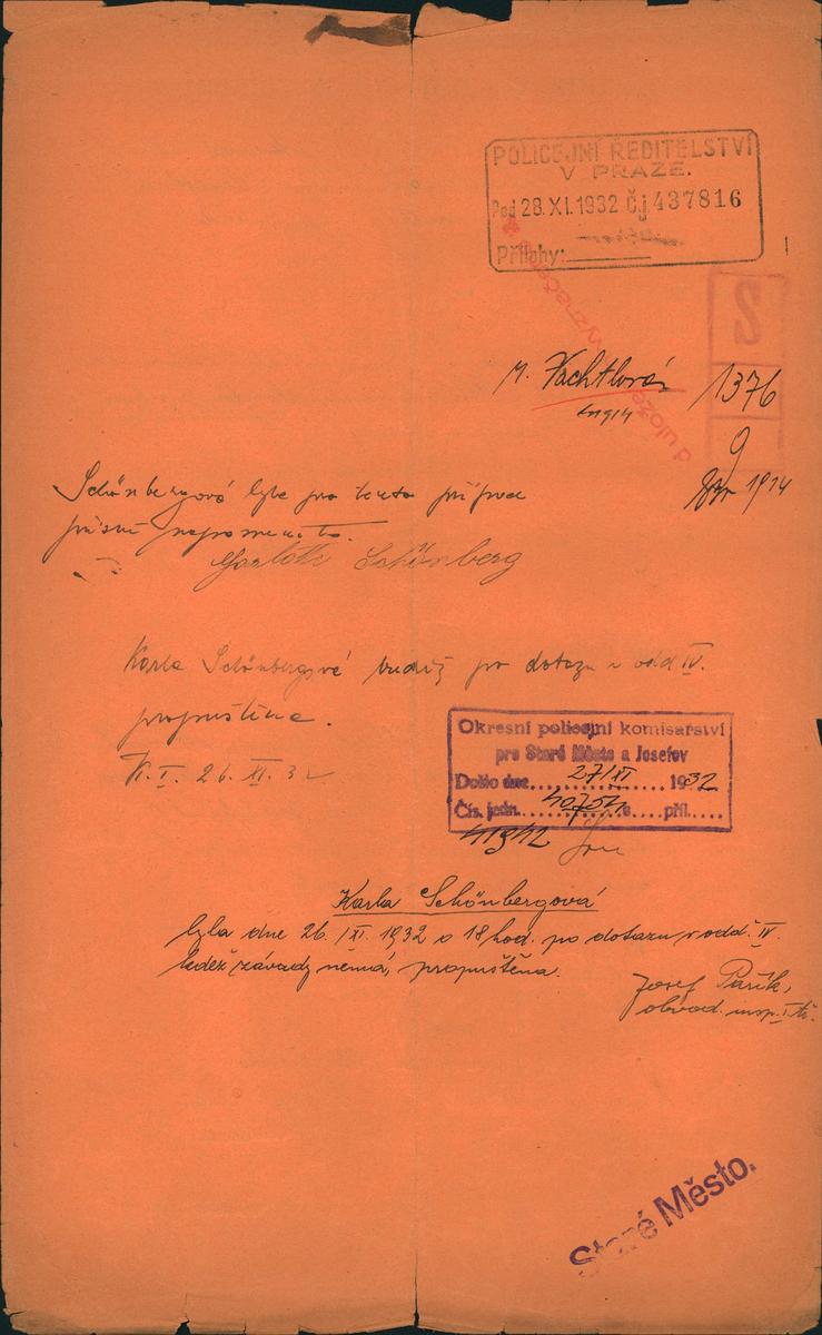 Národní archiv Praha > Policejní ředitelství v Praze > 1941-1950 > S > Schönbergová Šarlota