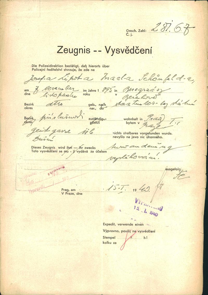 Národní archiv Praha > Policejní ředitelství v Praze > 1941-1950 > S > Schönfeld Josef