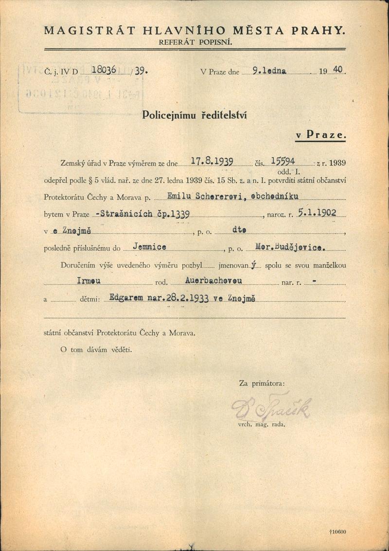 Národní archiv Praha > Policejní ředitelství v Praze > 1941-1950 > S > Scherer Emil