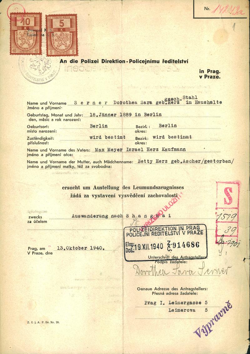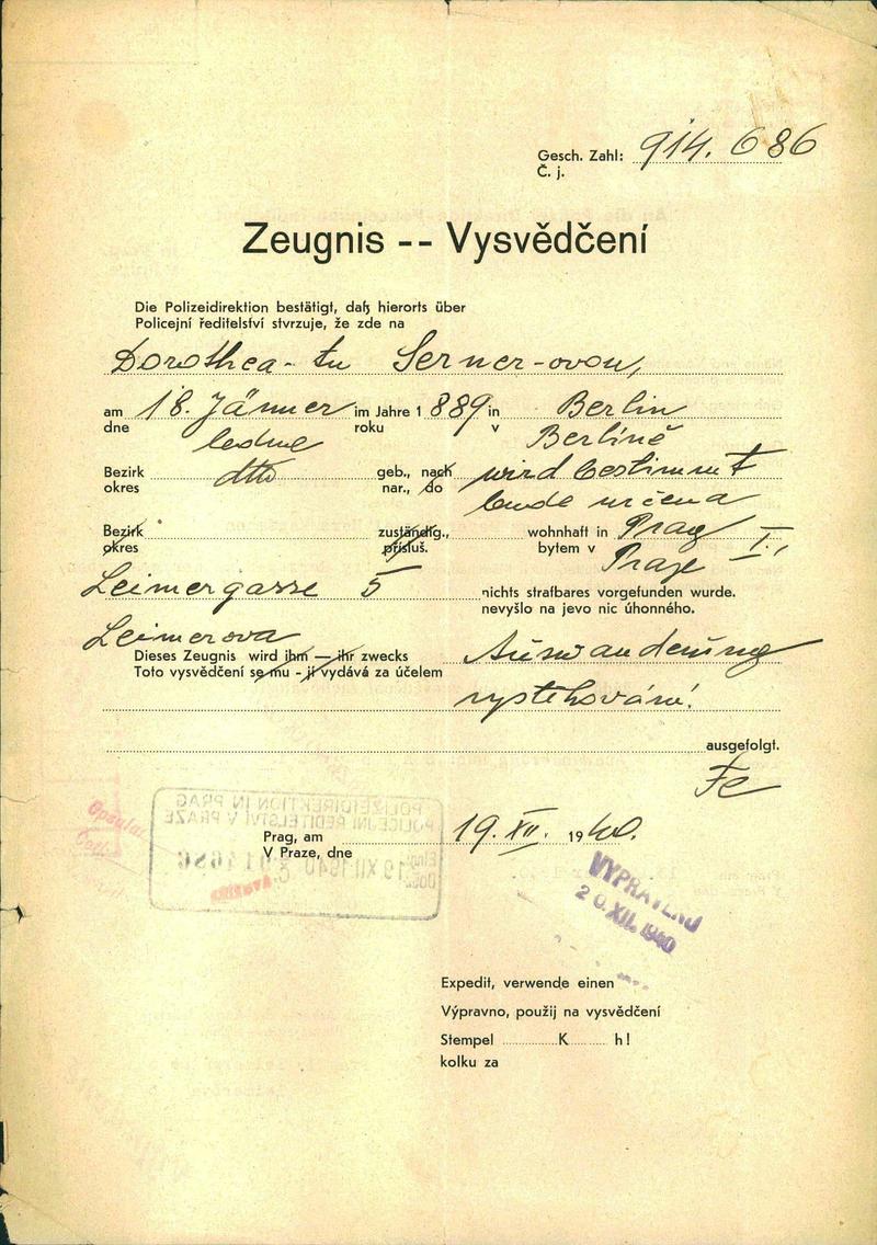 Národní archiv Praha > Policejní ředitelství v Praze > 1941-1950 > S > Sernerová Dorotea