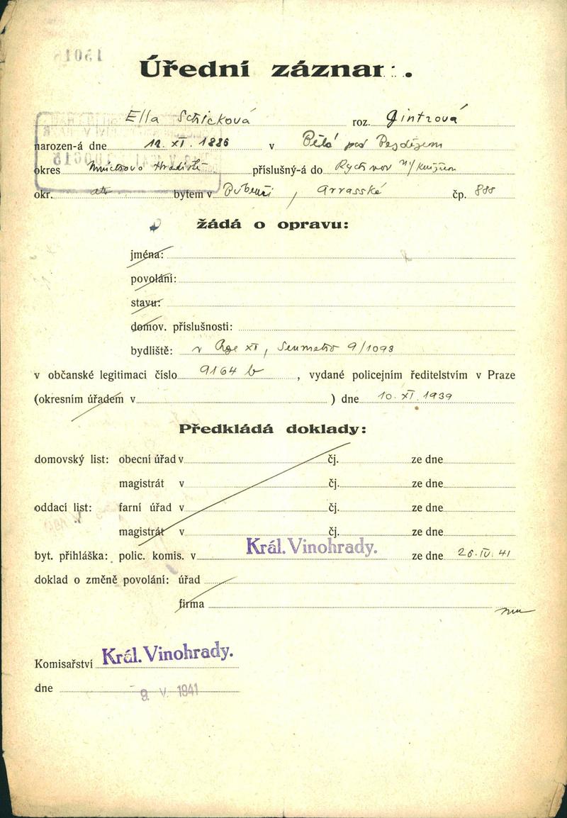 Národní archiv Praha > Policejní ředitelství v Praze > 1941-1950 > S > Schicková Ela