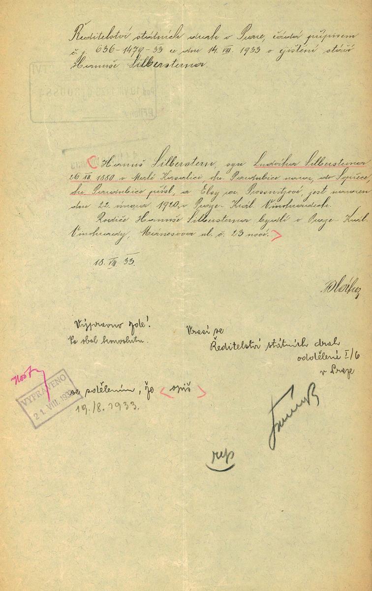 Národní archiv Praha > Policejní ředitelství v Praze > 1941-1950 > S > Silberstern Ludvík