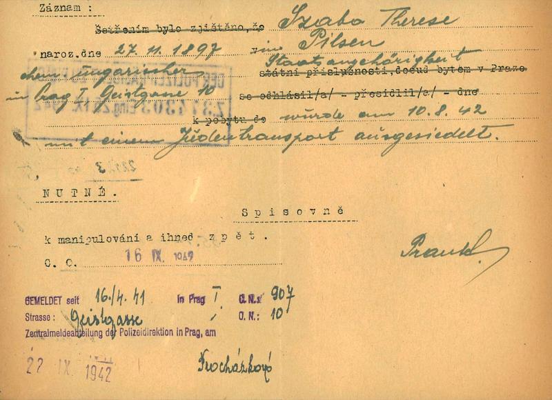 Databáze obětí nacistického pronásledování obsahuje jména a osudy Židů deportovaných z českých zemí a vězňů terezínského ghetta z dalších evropských zemí a dále základní informace o Romech, Sintech a dalších osobách, které zemřely jako vězni v takzvaném „Cikánském táboře I“ v Letech u Písku.