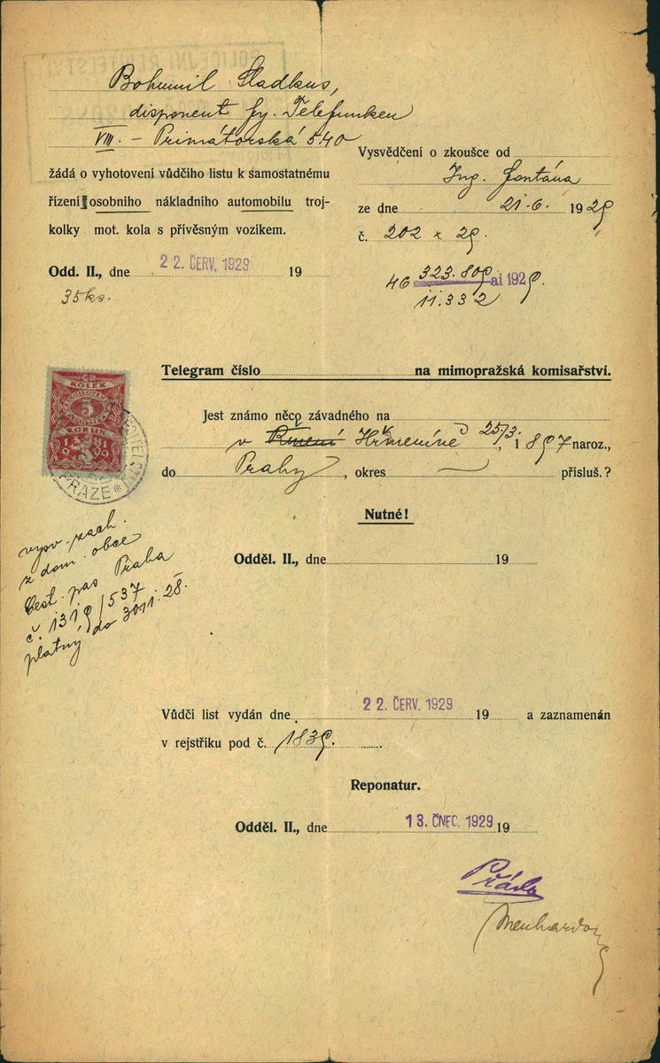 Národní archiv Praha > Policejní ředitelství v Praze > 1941-1950 > S > Sladkus Bohumil