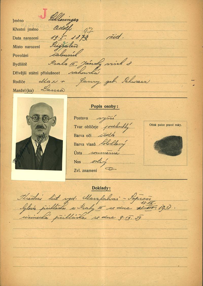 Národní archiv Praha > Policejní ředitelství v Praze > 1941-1950 > S > Schlesinger Adolf
