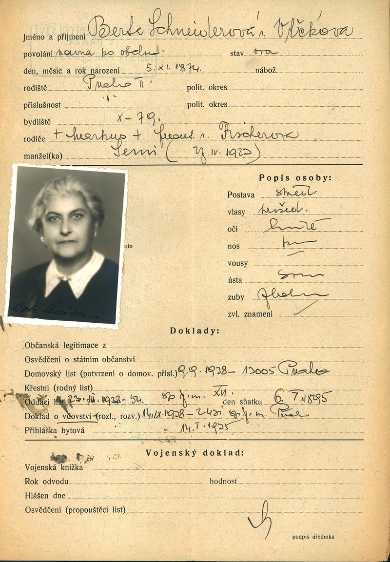Národní archiv Praha > Policejní ředitelství v Praze > 1941-1950 > S > Schneiderová Berta